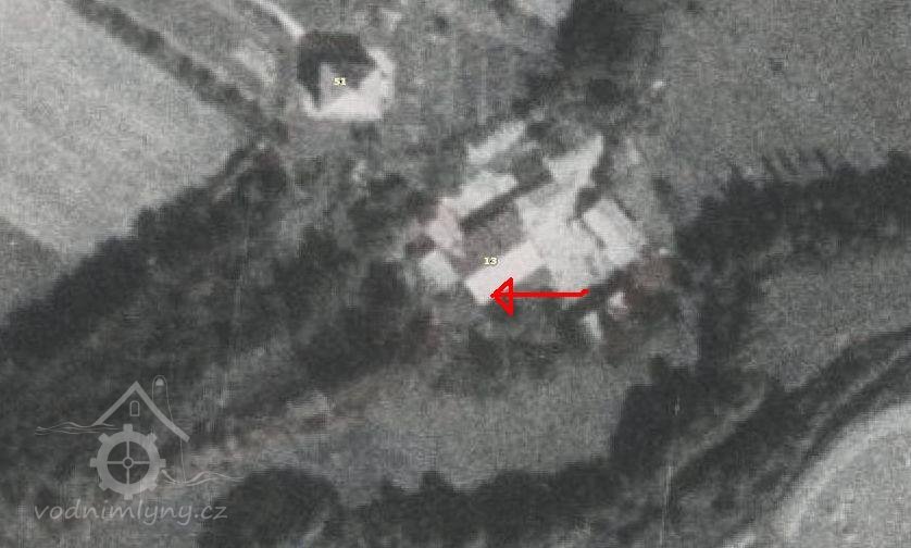 Indikační skica z r. 1838 ukazuje, že mlýn byl zděný, o jednom kole, poháněn vodou z nádržky na náhonu z Úsobského potoka. Měl čp. 13 a p.č.st. 12.