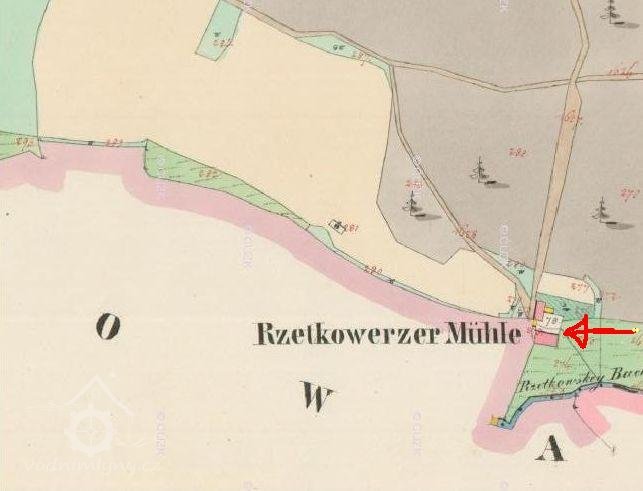 Značka mlýna pod rybníkem Ředkovec  je i na III. vojenské mapě 1877-80.