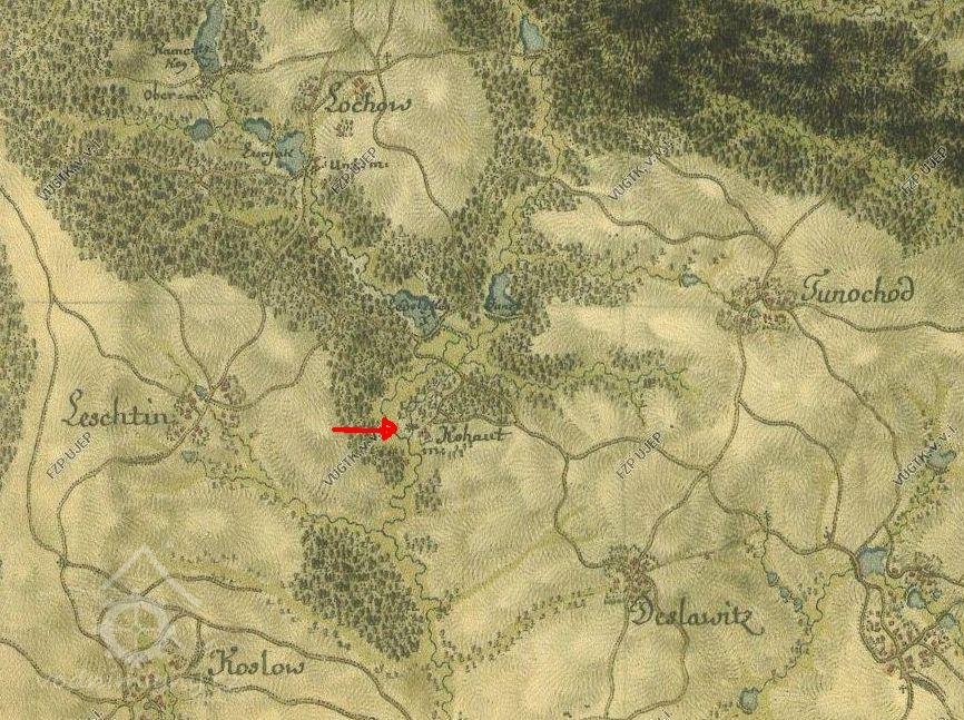 Kohoutův mlýn na Olešenském potoce SZ od Zdeslavic je již na I. vojenském mapování 1764-68. Ještě při leteckém snímkování 1953 stavení stálo. V současnosti již objekt bývalého mlýna neexistuje.