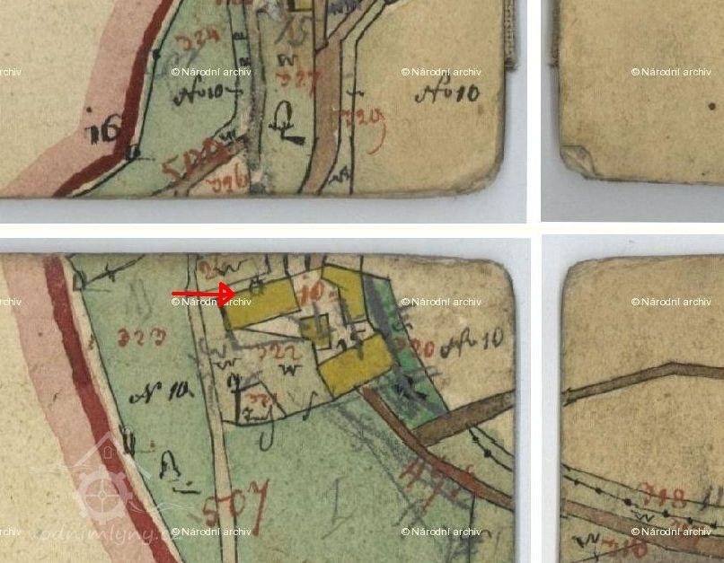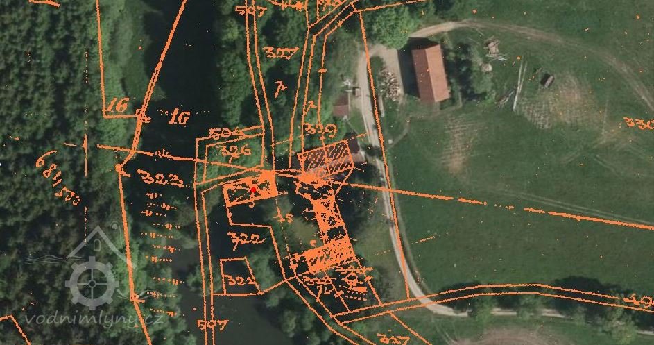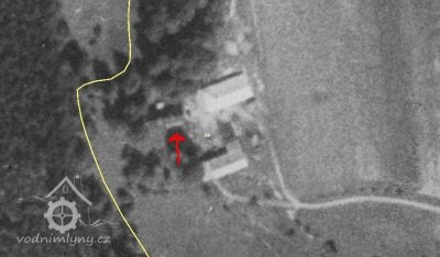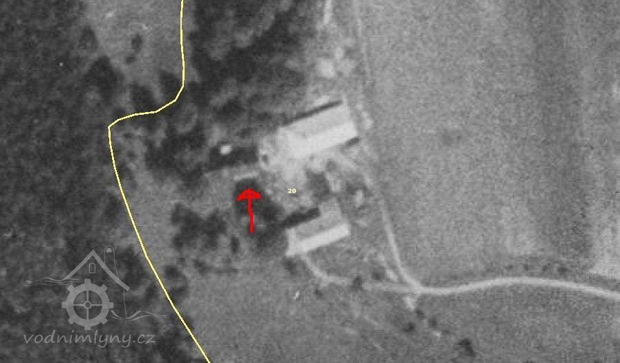 V roce 1953 podle leteckého snímku objekt bývalého mlýna ještě stál.