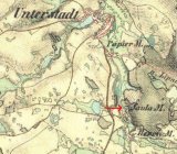 Na indikační skice a císařském otisku z roku 1838 je mlýn čp. 50, p.č.st. 108, budova z nespalného materiálu o jednom kole na tehdy Meziklasním, dnes Pstružném potoce. Mlynářem v r. 1838 byl Vincenc Vaňkát /Winzentz Wankhat/.