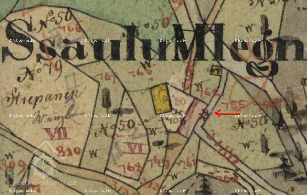 Mlýn je jako Ssaulův označen i na II. vojenském mapování v letech 1836-52.