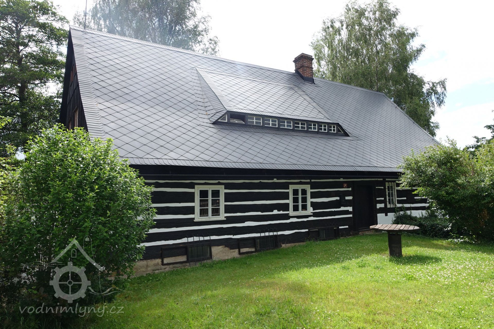 Hlavní podélné průčelí orientované k hrázi je čtyřosé roubené. Roubení je opatřeno černým nátěrem, vápenocementové spáry jsou bílené. Nárožní spoje jsou rybinové, na pravé straně s dochovaným neobvyklým tesařským značením důlky (na každém trámu je dvojí řada důlků, aby bylo zřejmé, kterou stranou mají být sesazeny, počet jde odspodu nahoru).