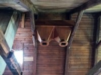 Obytná část v patře je dvoutraktová roubená s převážně neomítanými stěnami.