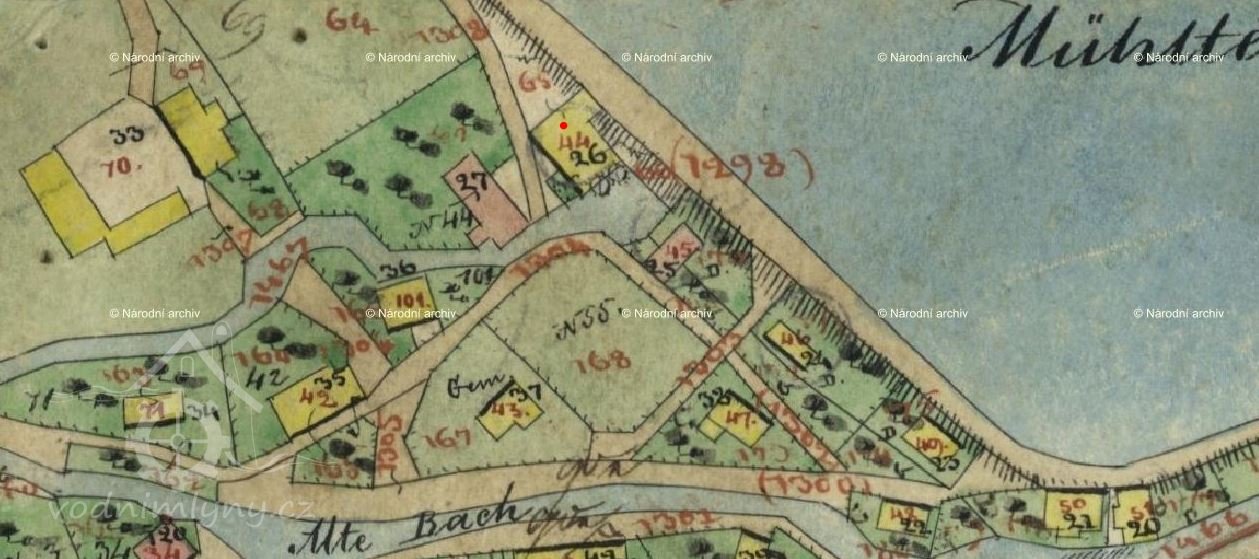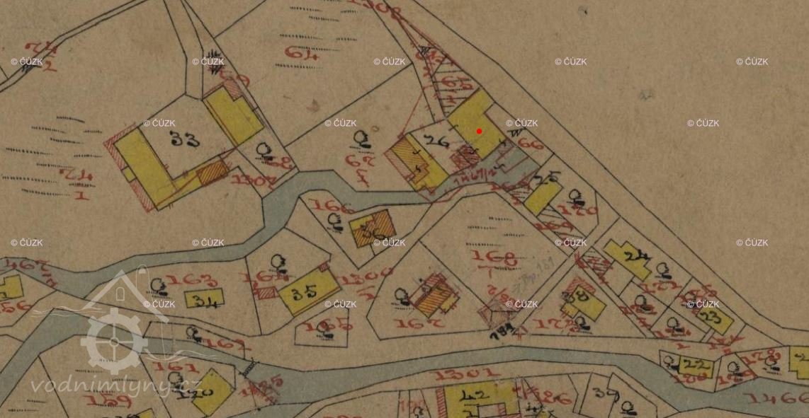 Dle návrhu je rovněž uvedeno, že stroje mlýna byly odvezeny do jiného objektu. Náhon p.p.č. 1467/2 nebyl přívodním kanálem vody pro mlýn, ale pouze odtokovým. Přívodní kanál, pro zajištění funkčnosti mlýna byl řešen samostatným potrubím uloženým v zemi - pod tělesem komunikace p.p.č.1298/1 a dále pod povrchem pozemků p.č.1298/4 a st.p.č.26/1 ve vlastnictví p. Martina Rejmana a p. Tomáše Rejmana, vlastníků objektu mlýna.