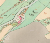 Původní velký rybník protržen 1756 a již neobnoven, po roce 1800 zřízen menší rybník, jez, náhon a vantroky