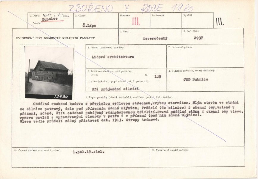 Další upřesněníhttp://pamatkovykatalog.cz/?legalState=138648&mode=fulltext®ion%5B0%5D=Libereck%C3%BD+kraj&county%5B0%5D=Liberec&county%5B1%5D=%C4%8Cesk%C3%A1+L%C3%ADpa&municipality%5B0%5D=Dubnice&municipalityPart