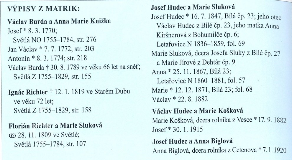 po něm jeho syn Josef Hudec (*30.1.1915), manž. Anna Biglová, dc. rolníka z Cetenova.