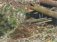 1930 jez s opěrnými zděnýmu pilíři, opatřený v koruně cihelným zdivem o délce 5,5 m.