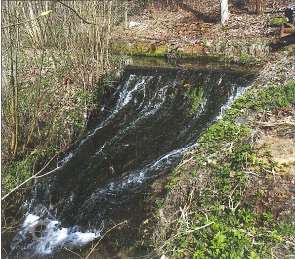 Nad mlýnem byl na Ještědce kamenný jez (pod silnicí nedaleko domu čp. 15, dochován vč. zbytku vpouštěcího stavidla do náhonu), u něj začínal na levém břehu náhon vpouštěcím stavidlem. Voda vedena cementovýmu rourami o světlosti 60 cm do turbínové kašny. Krátký odtok se vracel do potoka. Nový odpad od turbíny veden přes pozemky pod koryto dosavadního odpadu mlýnského a vyveden do jalového řečiště.