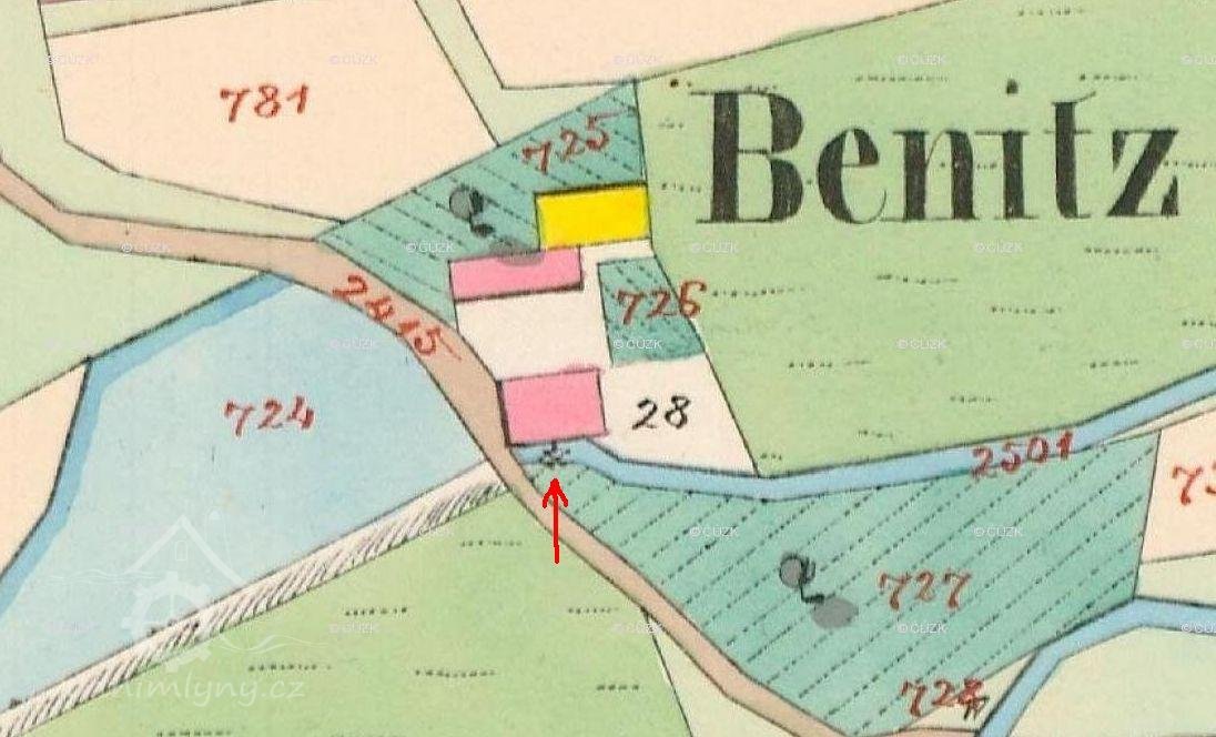 Z Borovky po proudu Tloskovského potoka v Benicích, zhruba dva kilometry západně od Chrášťan, se nacházel mlýn s číslem popisným 3. Za první republiky bylo ve mlýně živo. Bydlelo v něm pět osob, jeho majitel Josef Kalina s manželkou Annou, syn Ladislav, nevlastní syn Jaroslav Páris a pomocnice Božena Sýkorová. 19. května 1922 převzal objekt od otce Josefa Kaliny Ladislav Kalina (nar. 26. prosince 1898), který získal živnostenské oprávnění od okresního úřadu v Benešově 13. prosince 1922 v odvětví “mlynářství a obchod obilím a mlýnskými výrobky“.