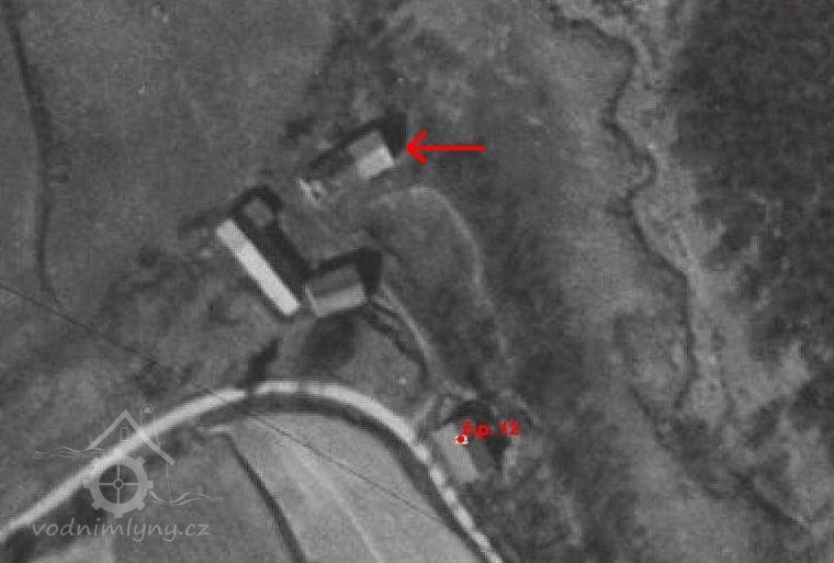 Na leteckém snímkování z roku 1953 je mlýn ještě zachován.
