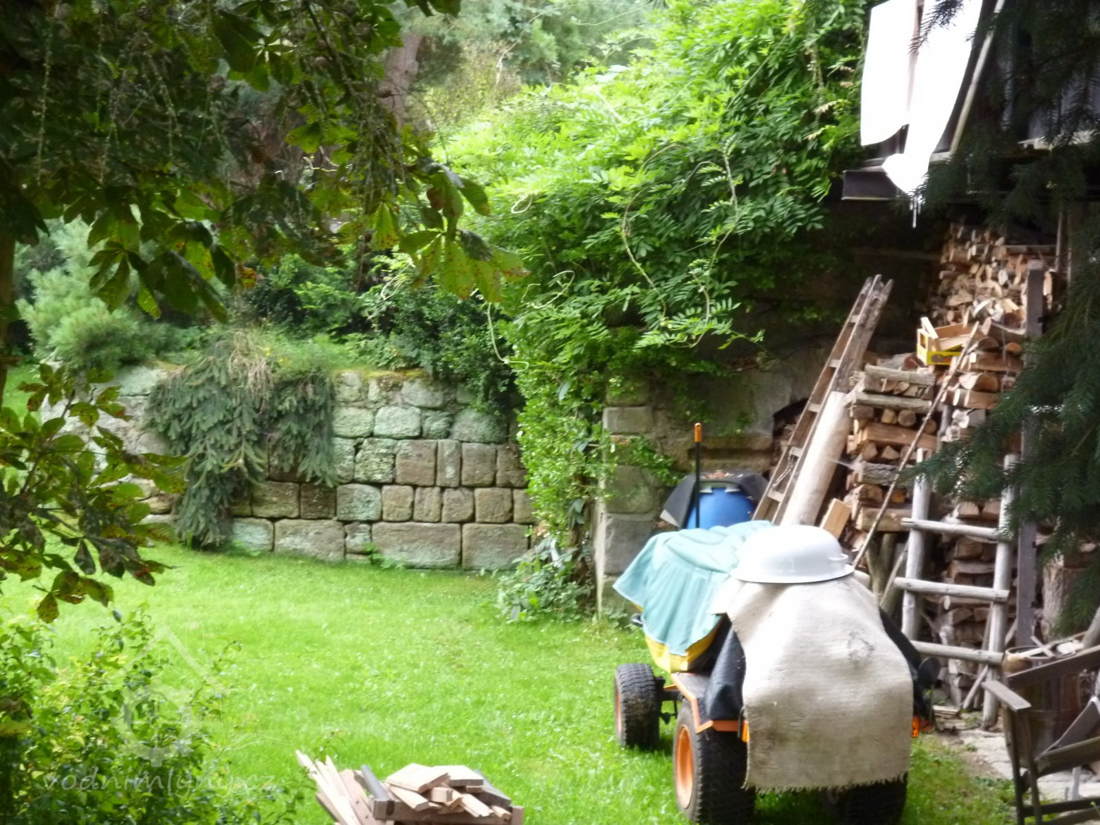 Je dobře dochovaný náhon, který protéká zahradou dnešního rekreačního stavení.