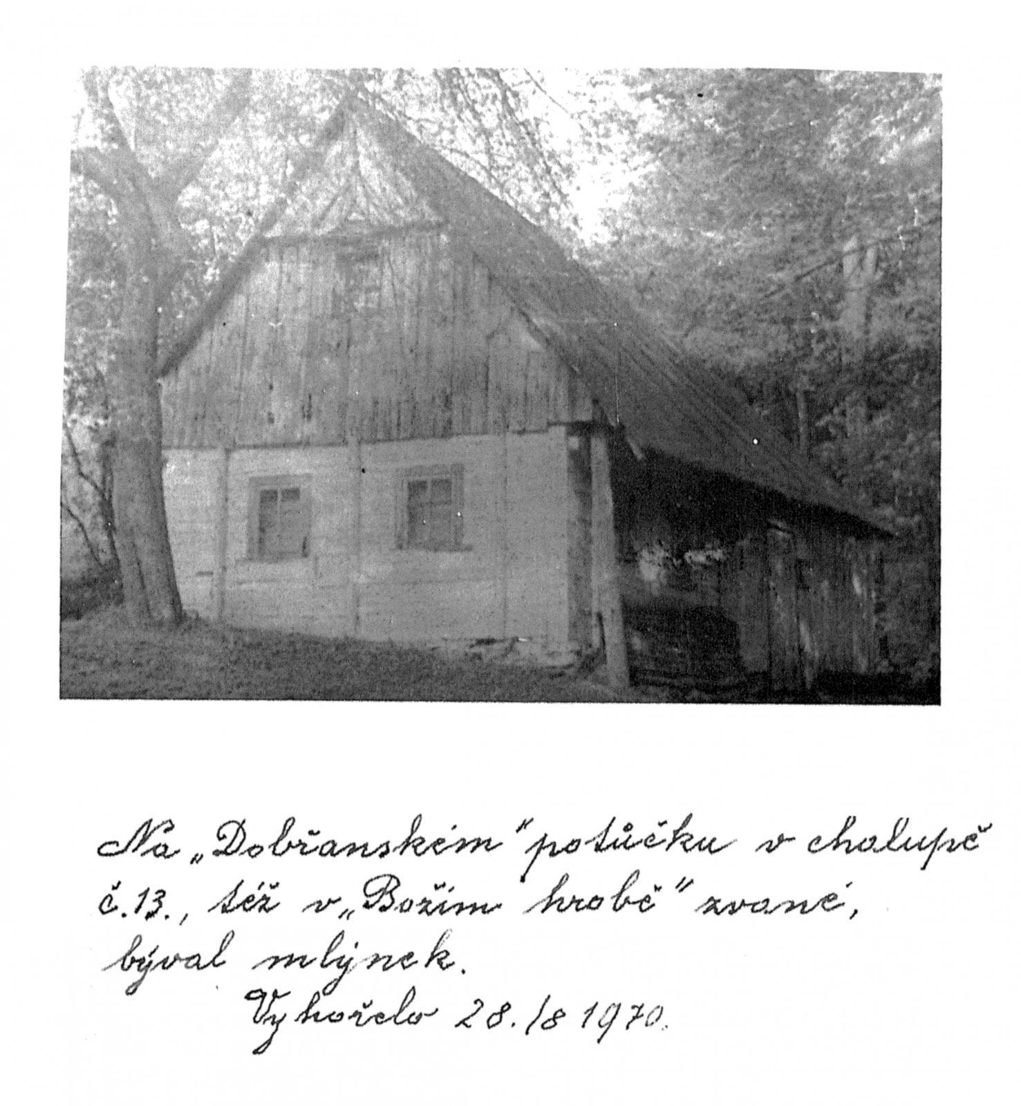 Mlýnek dosvědčený pouze ústní tradicí, v písemných pramenech nedoložený. Avšak vzhledem k tomu, že k budově je doveden náhon a tkalcovna na této adrese registrována nebyla, je existence malého "černého" mlýnku celkem pravděpodobná. Stavení vyhořelo 28. srpna 1970, dnes zřícenina.