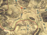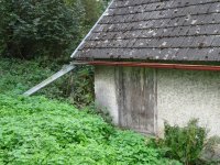 Hodně stranou stojí pěkně zachovaná, asi 250 let stará, ze dřeva roubená stodola (již neexistuje-autor stránky), s velice vysokou a příkrou doškovou střechou..