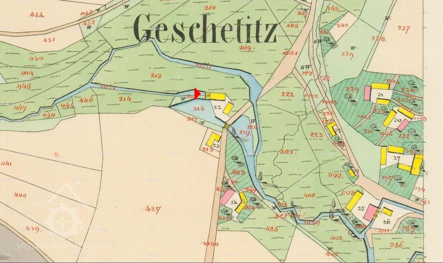 Popis1930: 1 kolo na svrchní vodu, hltnost 0,107 m3/s, spád 3,35 m, výkon 2,87 HP