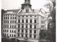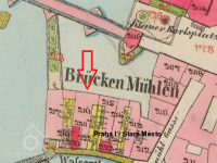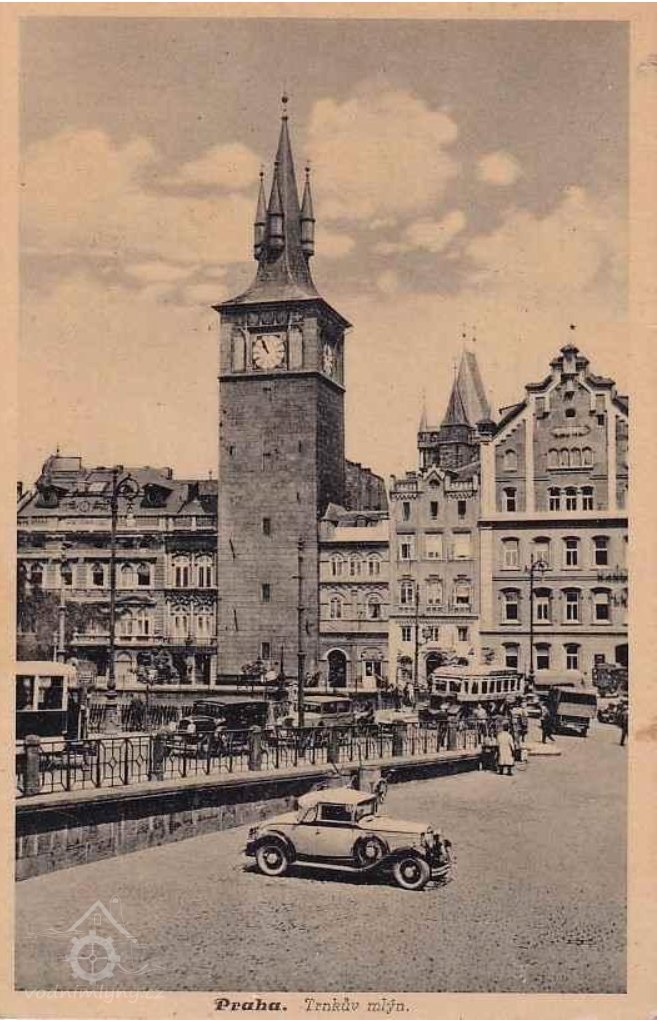 Původní mlýn byl přestavěn pozdně barokně po roce 1758. Z této přestavby pochází prostor o třech křížových polích po levé straně vstupní chodby. Většina ostatního zdiva, zčásti až do výše druhého poschodí, pochází nepochybně z přestavby po požáru r.1848. Dnešní fasády, rozdělení všech podlaží, jakož i nástavba třetího a čtvrtého patra jsou dílem přestavby po požáru r.1878 / stavitel W. Sigmund/. Fasáda podle projektu Ignáce Ulmanna. Ve výsečích arkád I. patra, sochy puttů od J.V.Myslbeka. /? /