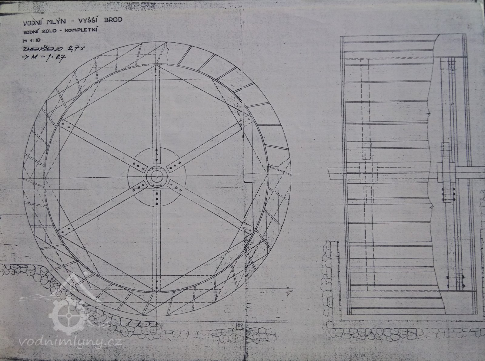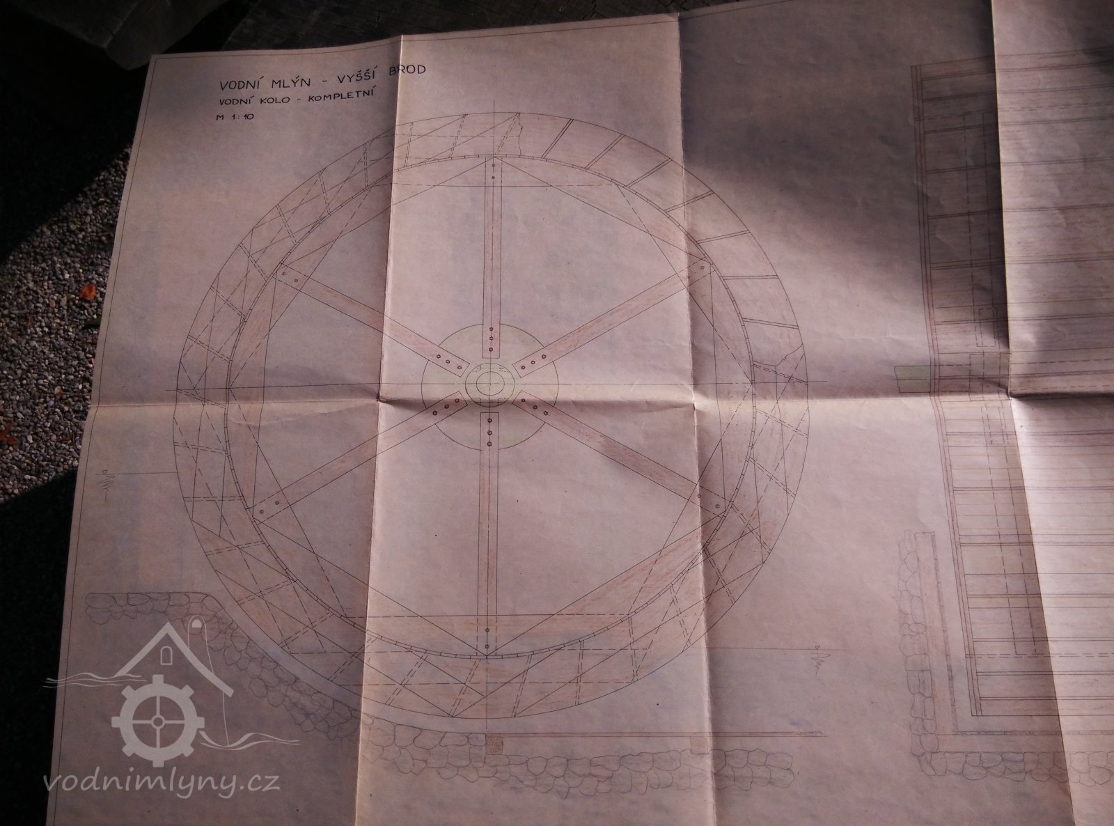 výkres pro obnovu vodního kola, kreslené před rokem 2000, foceno 2016, © Ouředník
