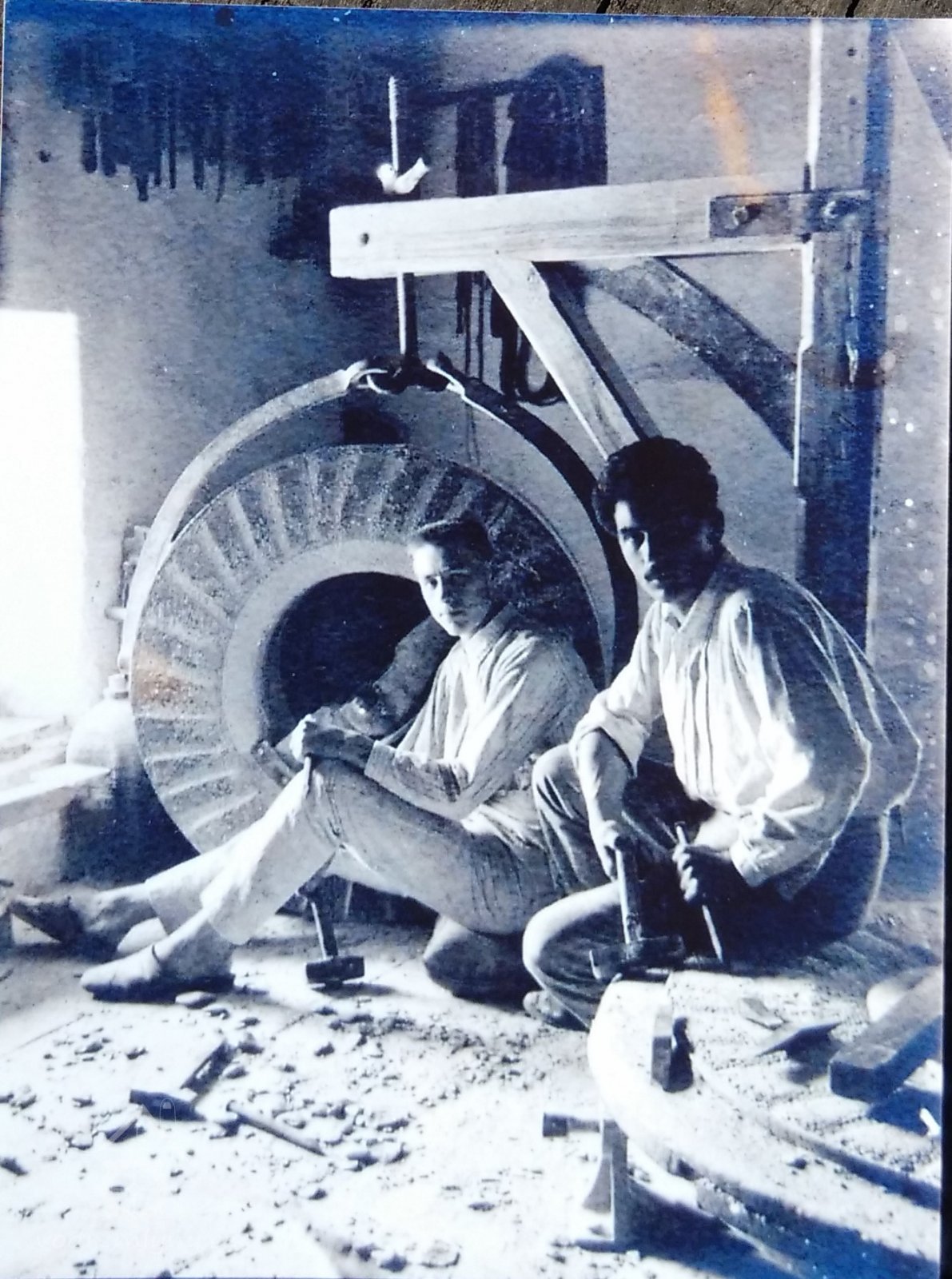 Křesání mlecích kamenů, 1. čtvrtina 20. stol., © autor neznámý