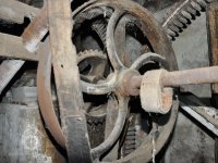 hlavní paleční kolo s čelními palci, 2015, © David Veverka, (Prvky na obrázku: transmise, řemenice, převody)