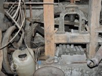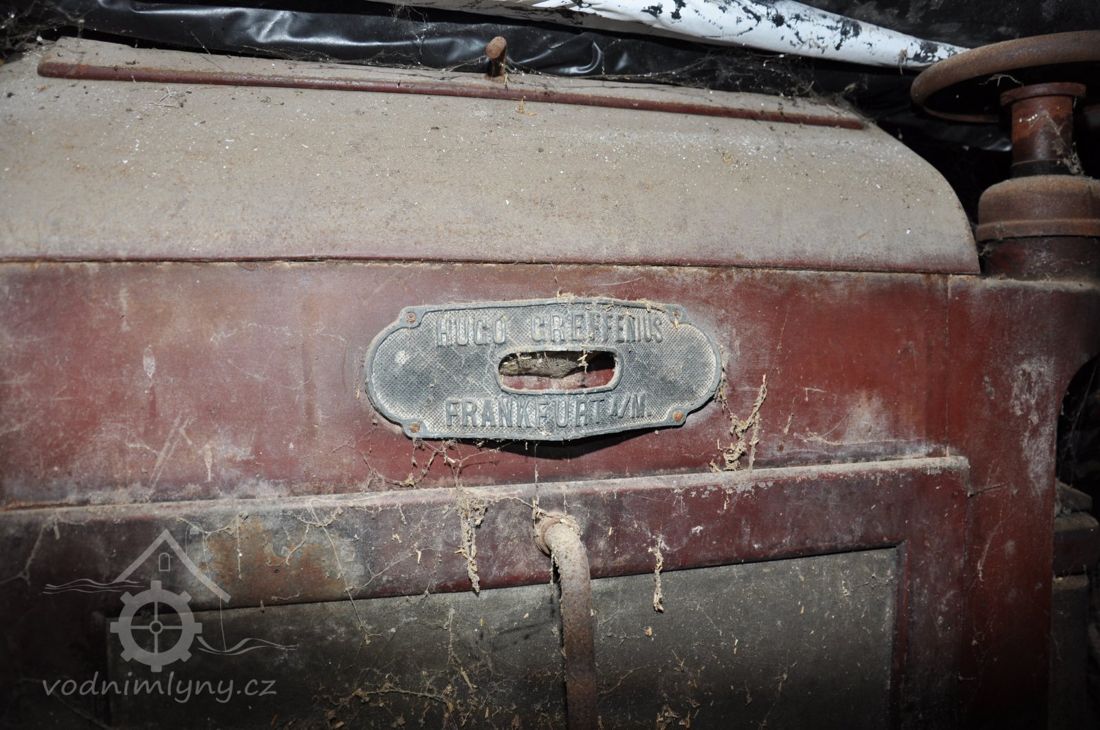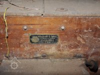 válcová stolice tuplovka výrobce Hugo Greffenius - Frankfurt nad Mohanem (vzácné), 2015, © David Veverka, (Prvky na obrázku: válcová stolice, značka výrobce na technologickém vybavení)