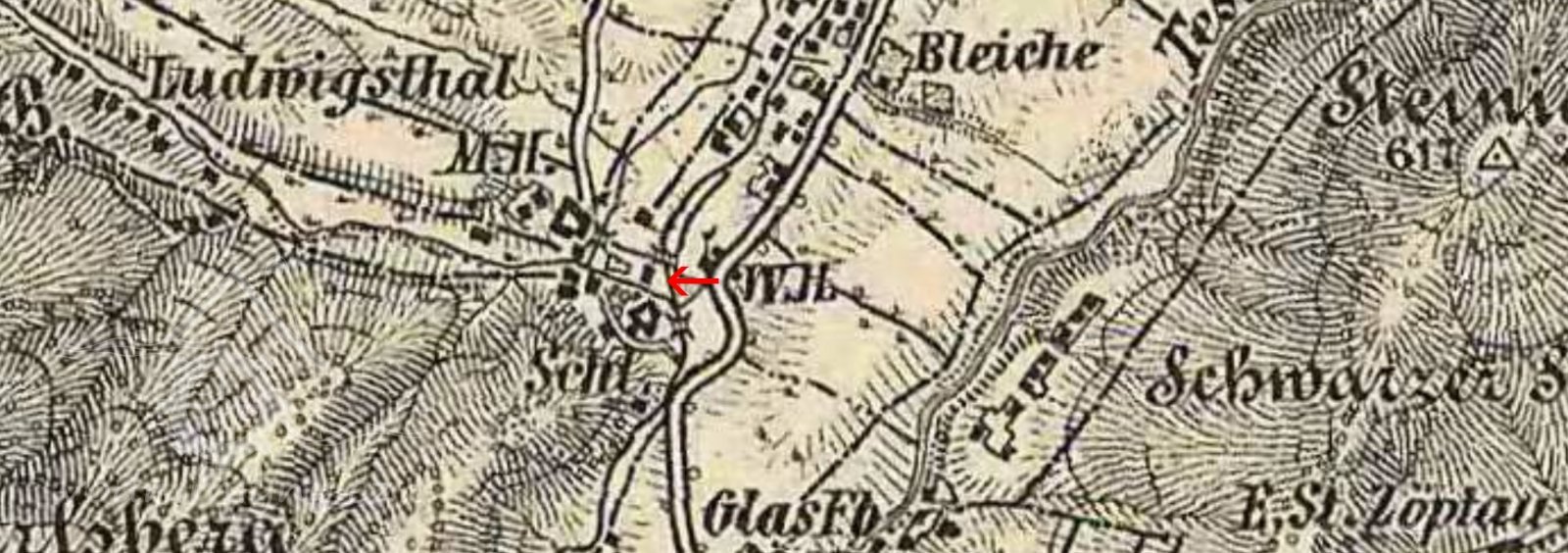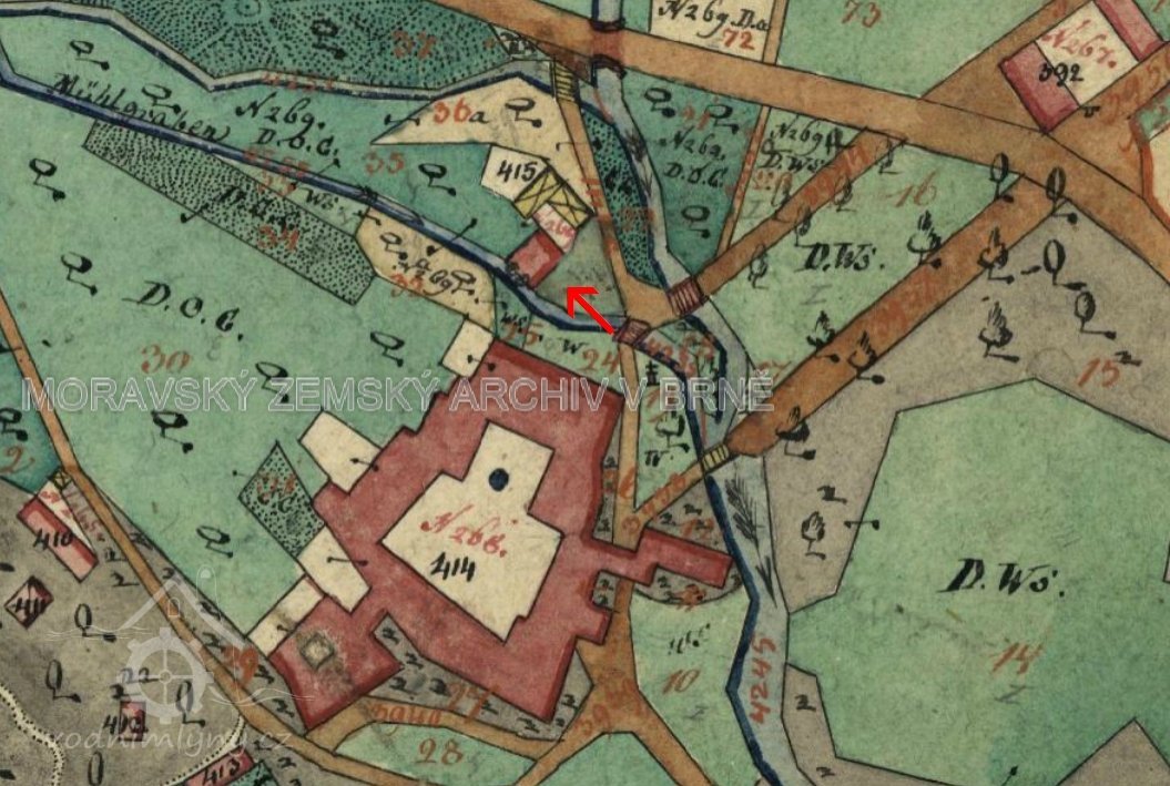 Poloha mlýna je určená podle dobových map. Mlýn není vyobrazen na Pozemkovém katastru, zanikl již v roce 1872.