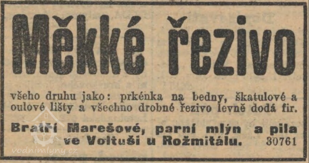 5. března 1920 zrušena Živnost mlynářská a pilařská. Zrušení obchodu následkem dohodnutí společníků. (viz časopis Mlynář 1921, ročník 42, číslo 22)