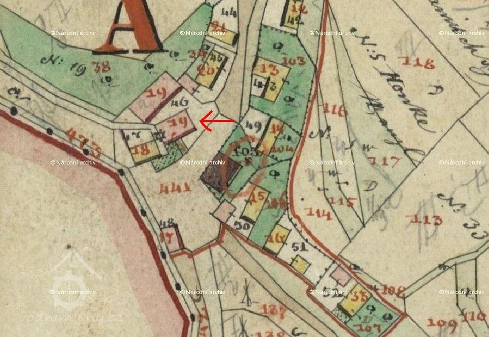 Na indikační skice a císařském otisku z roku 1843 je mlýn čp. 19, p.č.st. 46, uveden jako zděný mlýn o jednom kole. Mlynářem v té době byl Karel Leinweber.