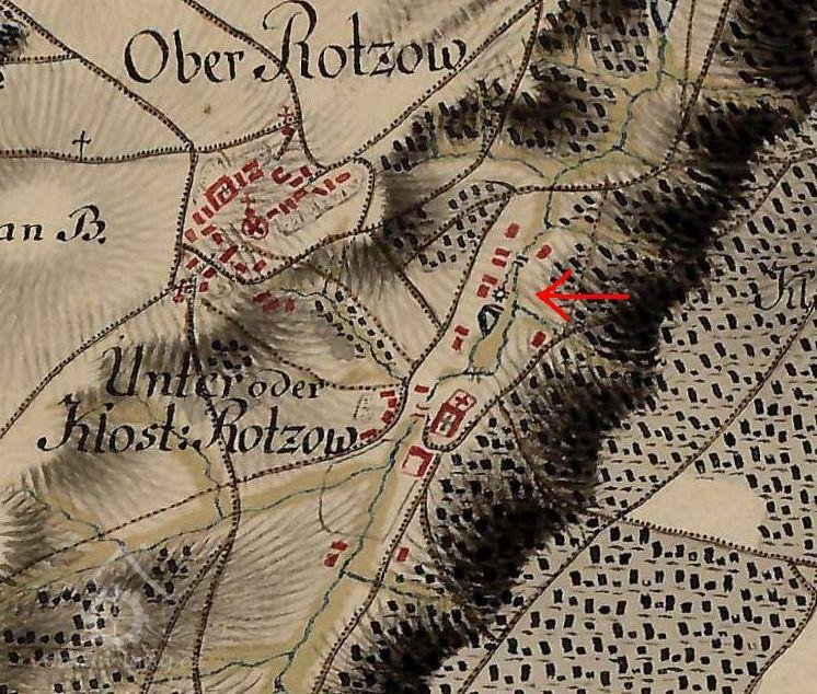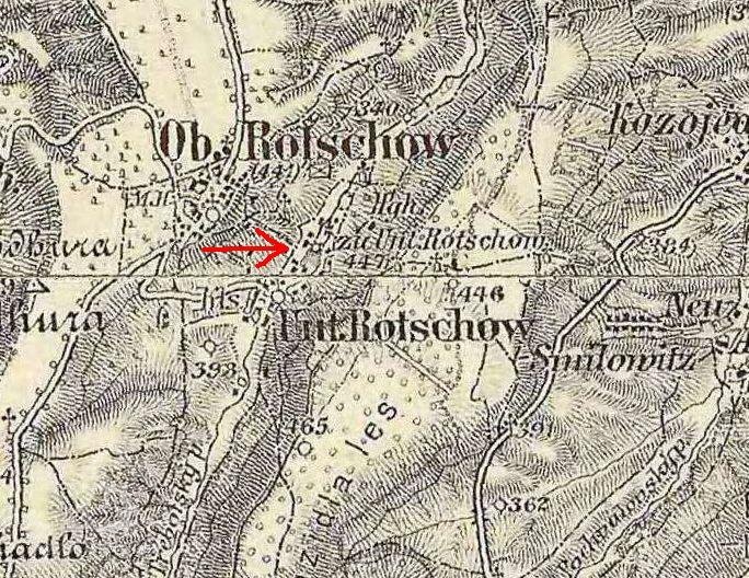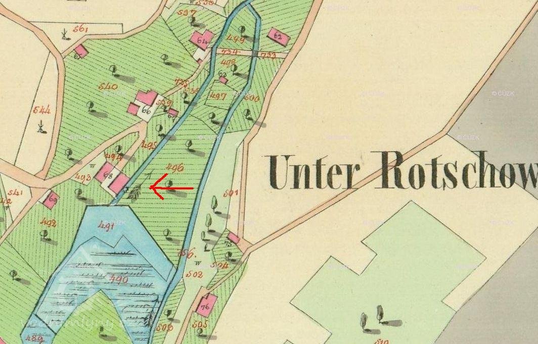 Mlýn patří katastrálně do Horního Ročova (Ober Rotschow), jak je možné ověřit na mapě Stabilního katastru.(RR)