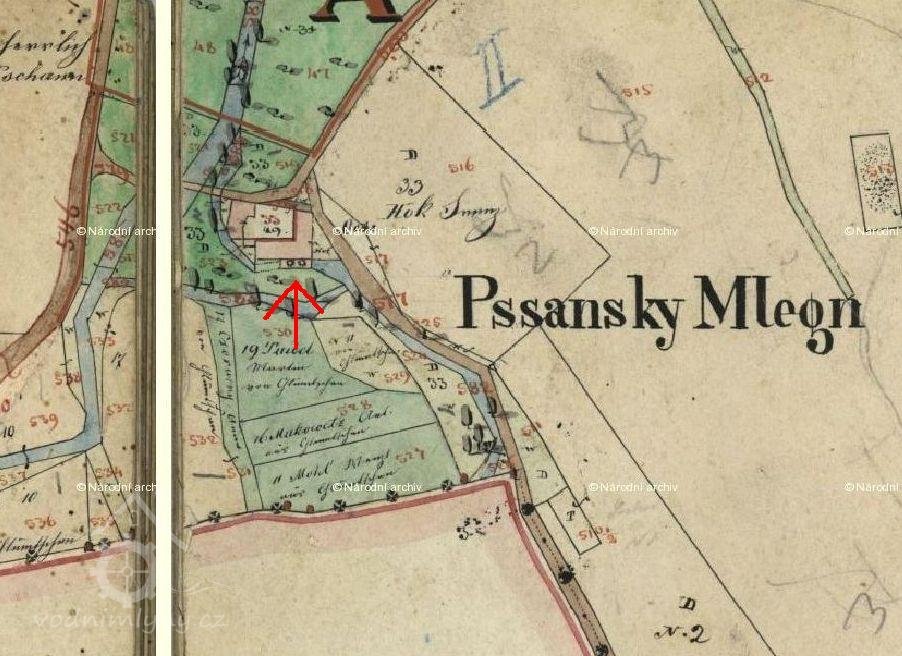 Vodní nádržka při starém mlýně byla široká, dlouhá až k novému rybníku a její propustí se voda vedla náhonem ještě do menší nádrže u samého mlýna.
