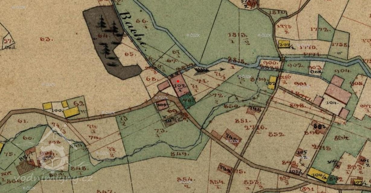 Popis1930: 1 kolo na svrchní vodu, hltnost 0,107 m3/s, spád 6,21 m, výkon 5,78 HP