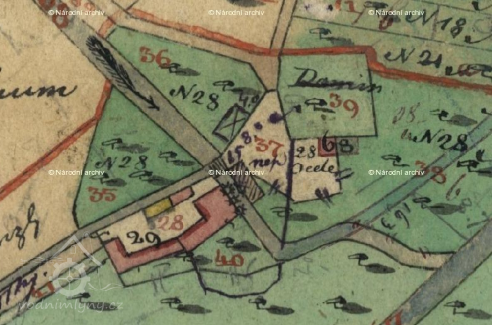 1774 za 1230 zl. koupil František Trojan, syn mlynáře na Okoři, u mlýna byla pila, z níž se platilo zvlášť 65 zl.