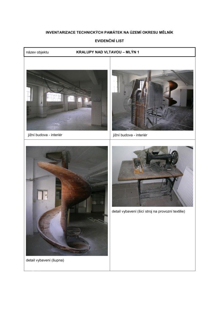 Mlýn je hodnotnou stavbou, poměrně kvalitní architekturou, která zásadně utváří kralupské městské jádro. Rozhodně cenné jsou některé dochované části původního vybavení (např. šupna, šicí stroj na mlýnské textilie, výtah na žoky s moukou).