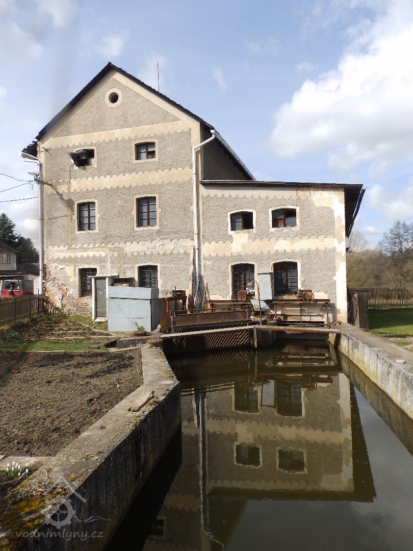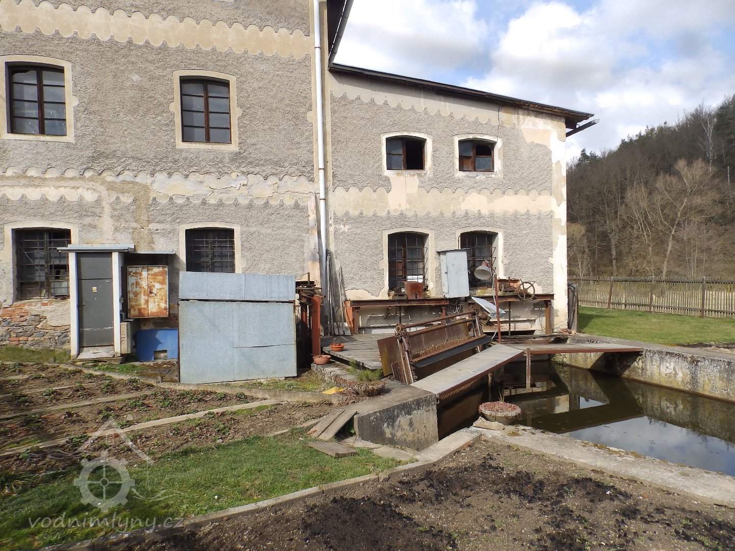 Úslava hrazena dvěma jezy o délce 50 m ze dřeva zpevněnými zdivem z kamene, voda do náhona pouštěna stavidlem 1,4 x 2 m, obezděný náhon dlouhý 150 m, u mlýna 3 stavidla 2 x 1 m, na konci levého břehu odbočoval přívod vody k větší turbíně v šířce 1,9 m a délce 3,4 m, který bylo možno uzavírat stavidlem. Náhon na konci rozdělen pilířem na 2 oddělení. K menší turbíně vedl levý žlab uzaviratelný stavidlem 2 m širokým a 71,5 cm vysokým, pravé oddělení zřízeno jako jalový žlab o šířce 195 cm.