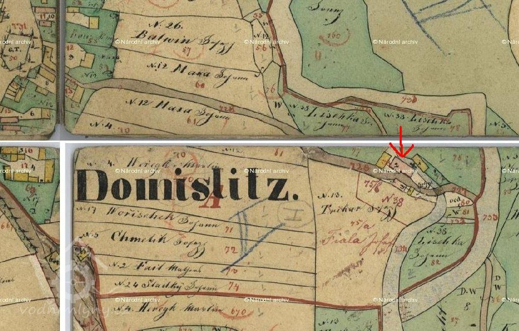 V letech 1744-54 se tu uvádí jako mlynář Jiří Mašek (dluží 100 zl. od kostela sv. Mikuláše) a v letech 1755 - 1762 Josef Vodák s manželkou Annou roz. Trykarovou ze Zdemyslic, převzal dluh 100 zl..