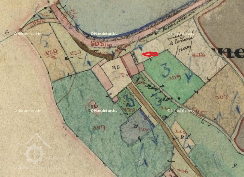PopisV roce 1930 ze bylo jedno vodní kolo na vrchní vodu, hltnost 0,11 m3/s, spád 5,08 m, výkon 4,85 HP.