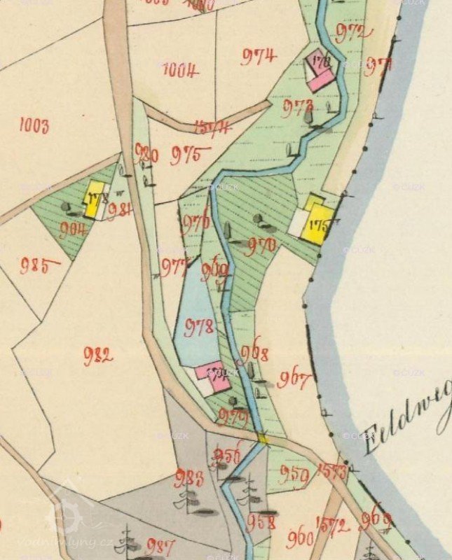 PopisBylo zde 1 kolo na svrchní vodu, průtok 0,069 m3/s, spád 5,7 m, výkon 3,3 k.