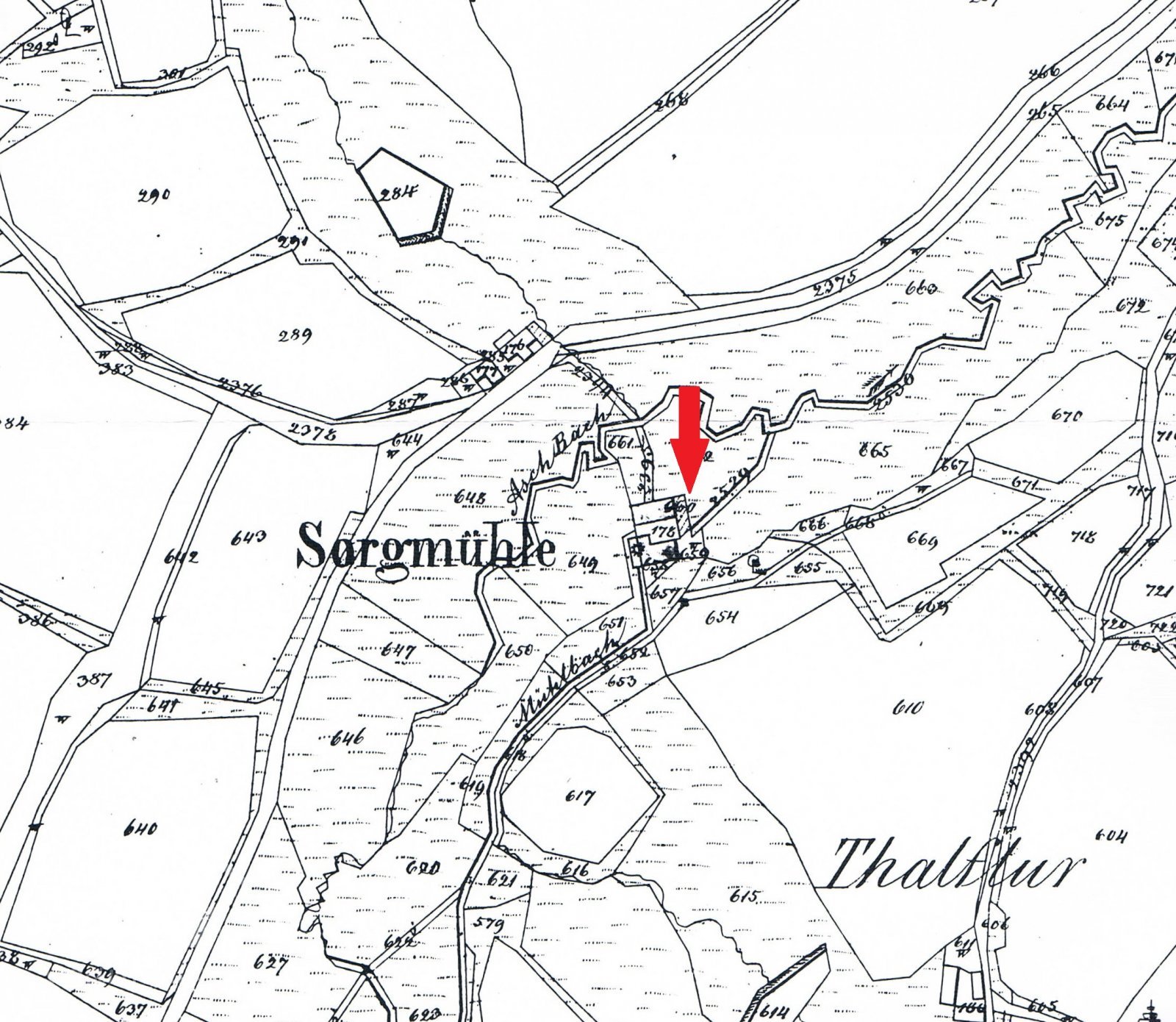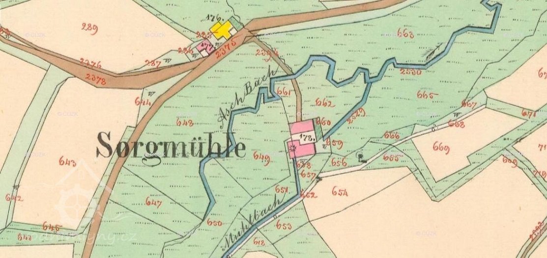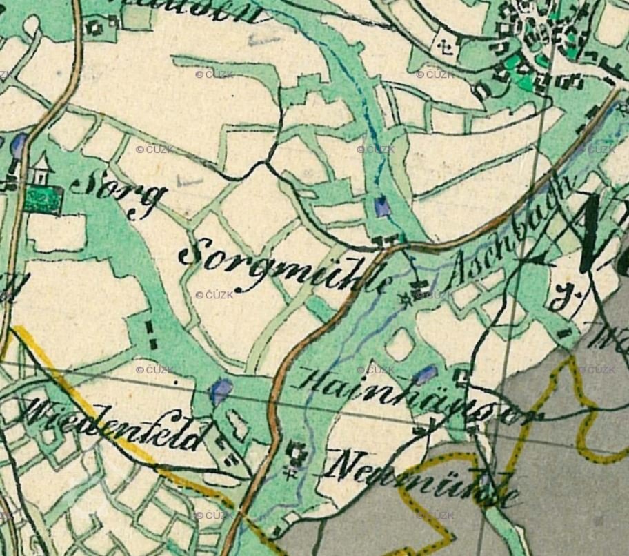 Několik km před mlýnem byla odbočka z Ašského potoka ke mlýnu.