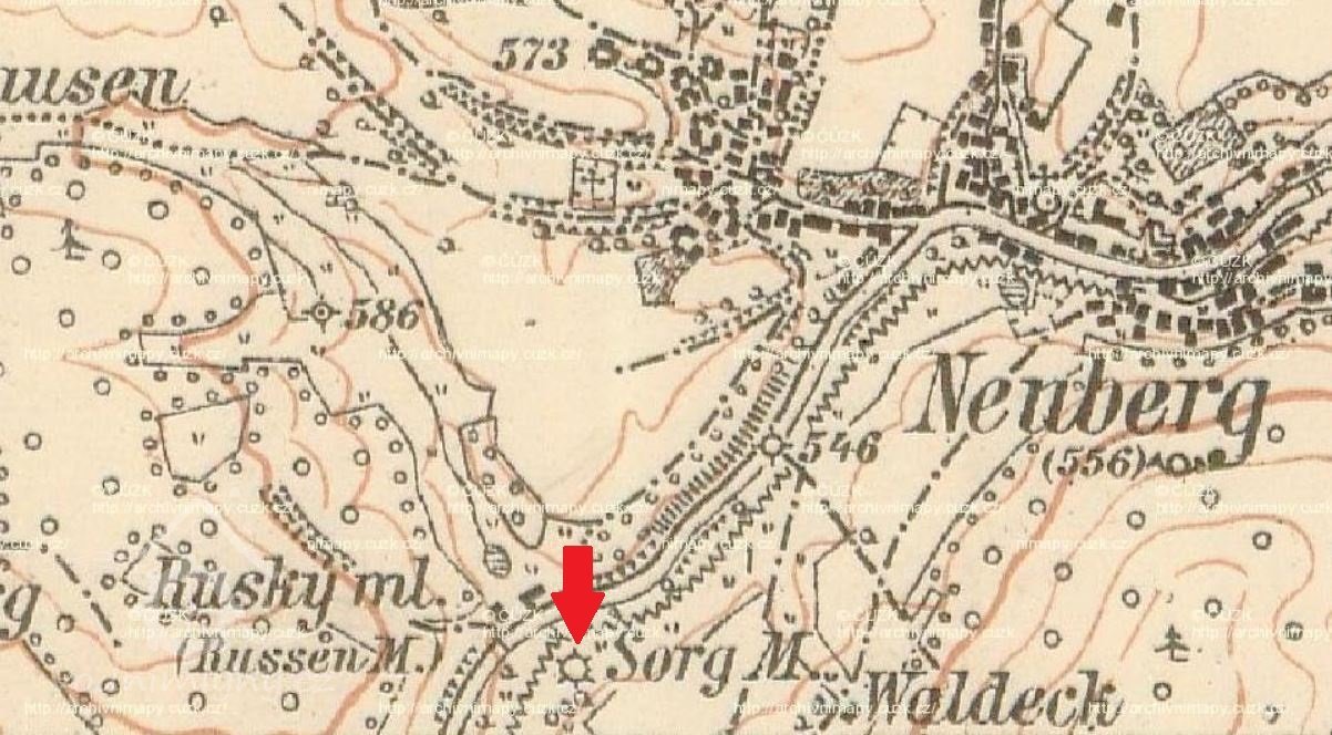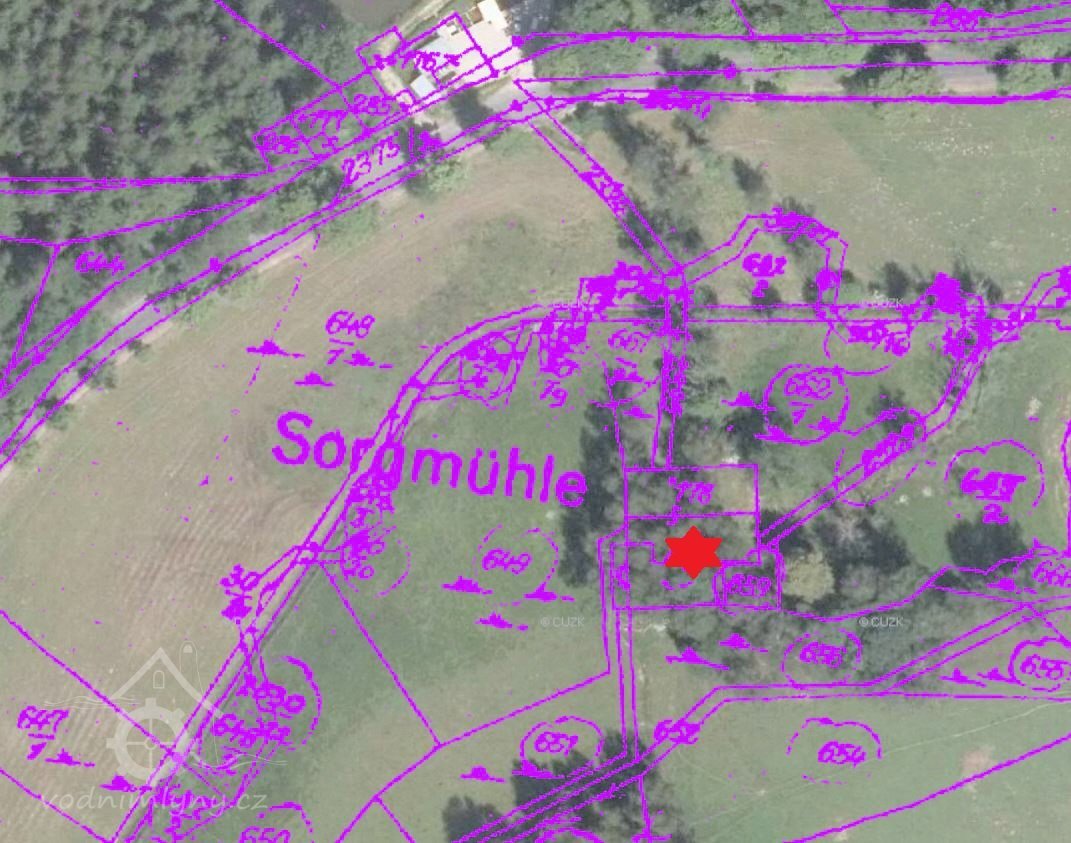 Mlyn se nachazel nekolik km od stredu obce Podhradi v otevrenem terenu.