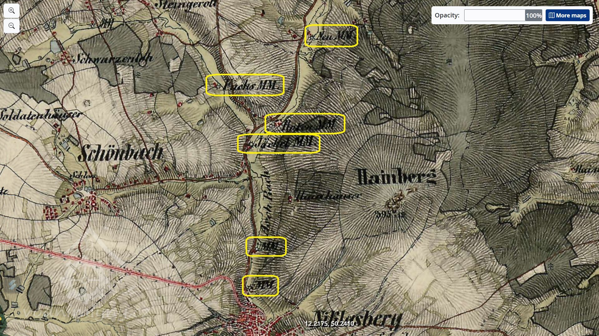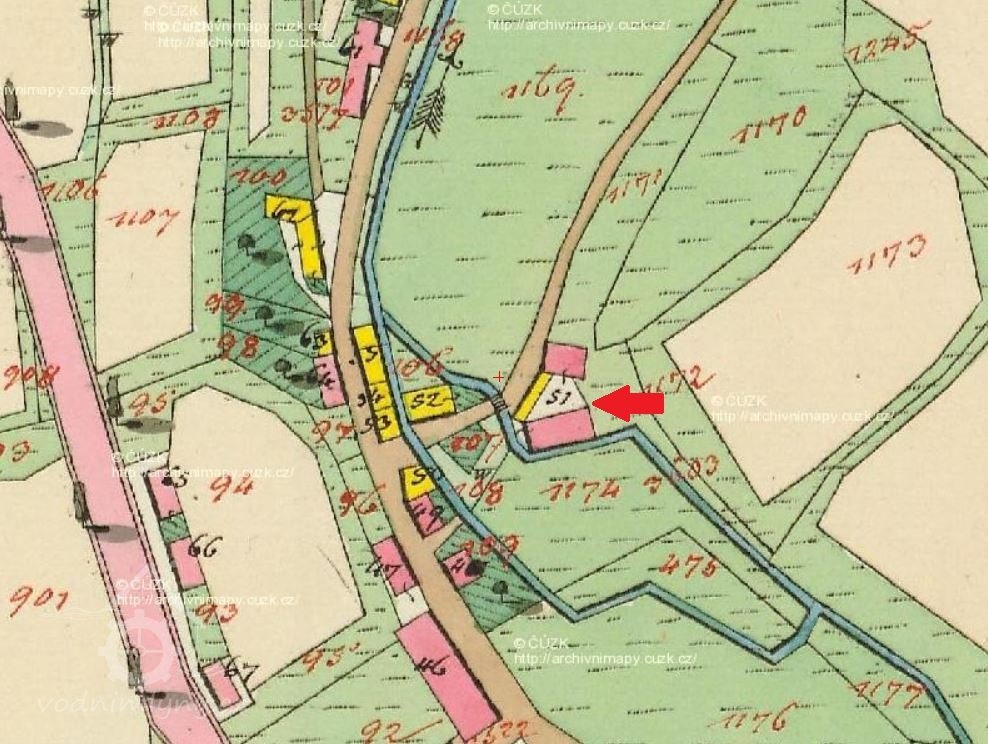 Poloha mlýna upřesněna podle pozemkového katastru. (RŠ)