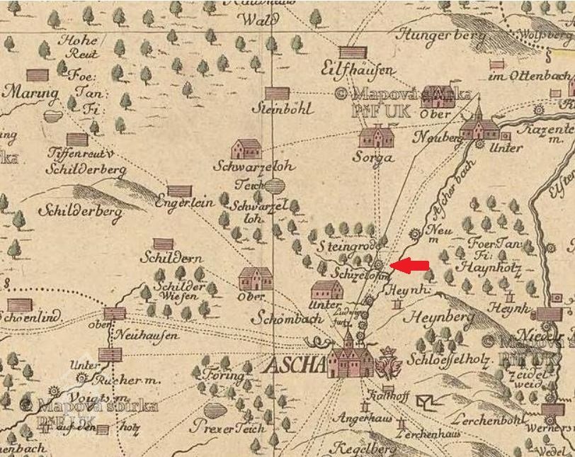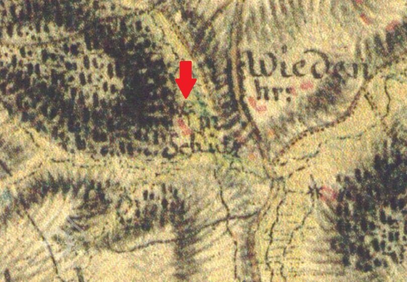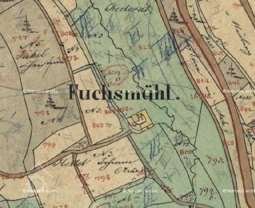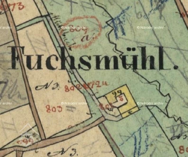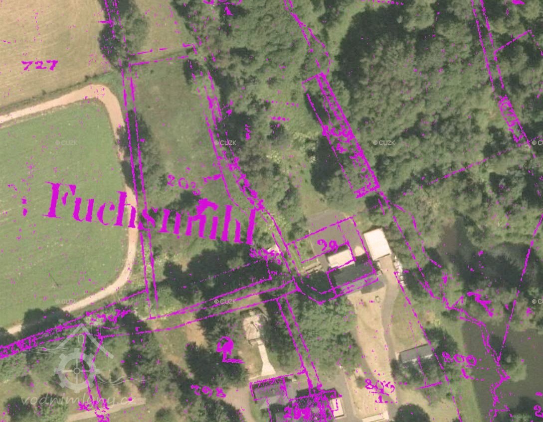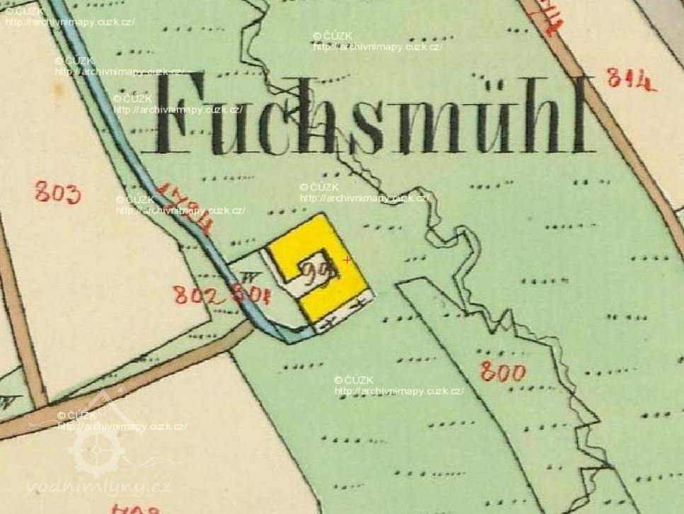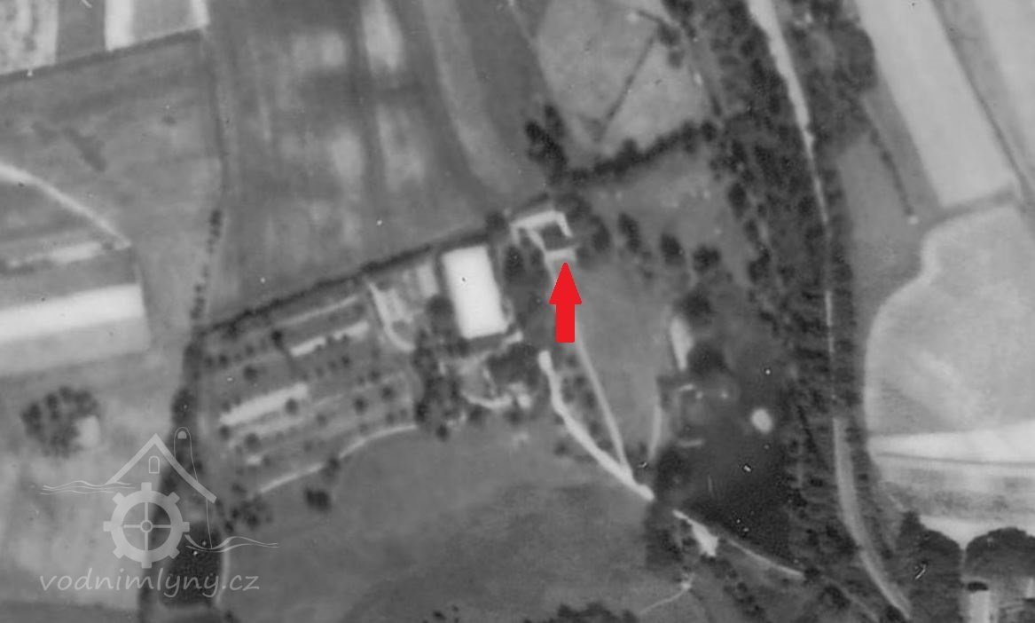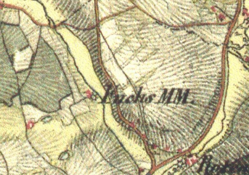 Mlecí mlýn zakreslený na Bauerově mapě 1716.