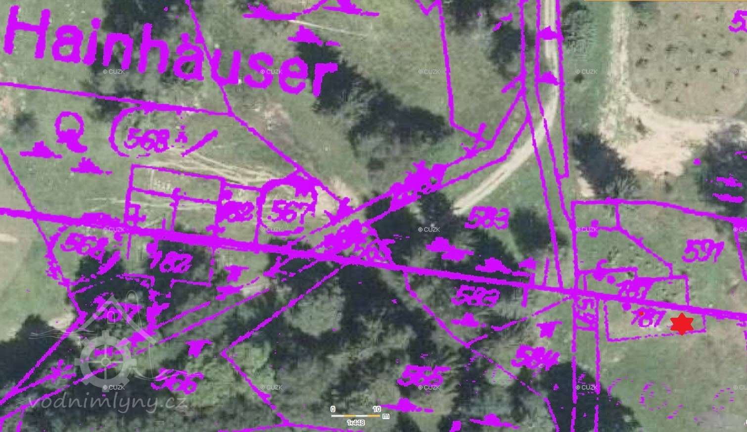 V roce 1893 "U vody z Haje (Hainwasser) se nachází Ploss-Mühle č. 156, kostní- a obilný mlýn Plossových dědiců."
