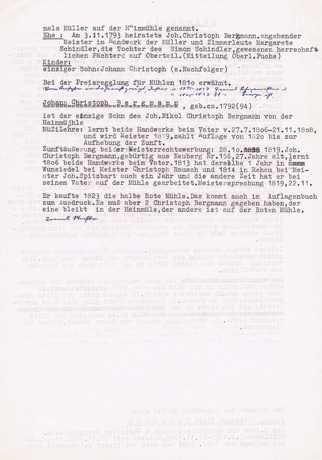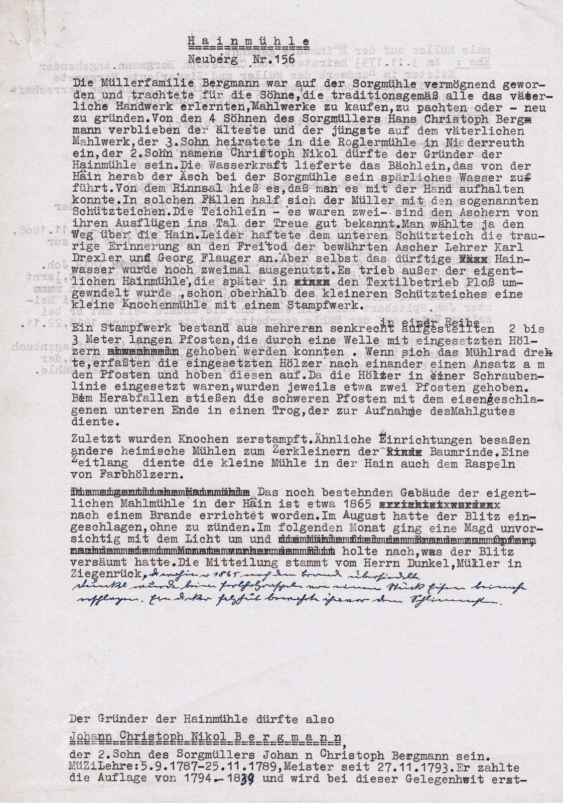 Dnes již neexistující mlýn. Obilí se zde mlelo pouze krátce v druhé polovině 19. století. Pak přestavěno na pletárnu. I ta brzy zkrachovala - přestavěna na byty. Dříve vše poháněla tzv. Hainwasser tedy voda z kopce Háj.