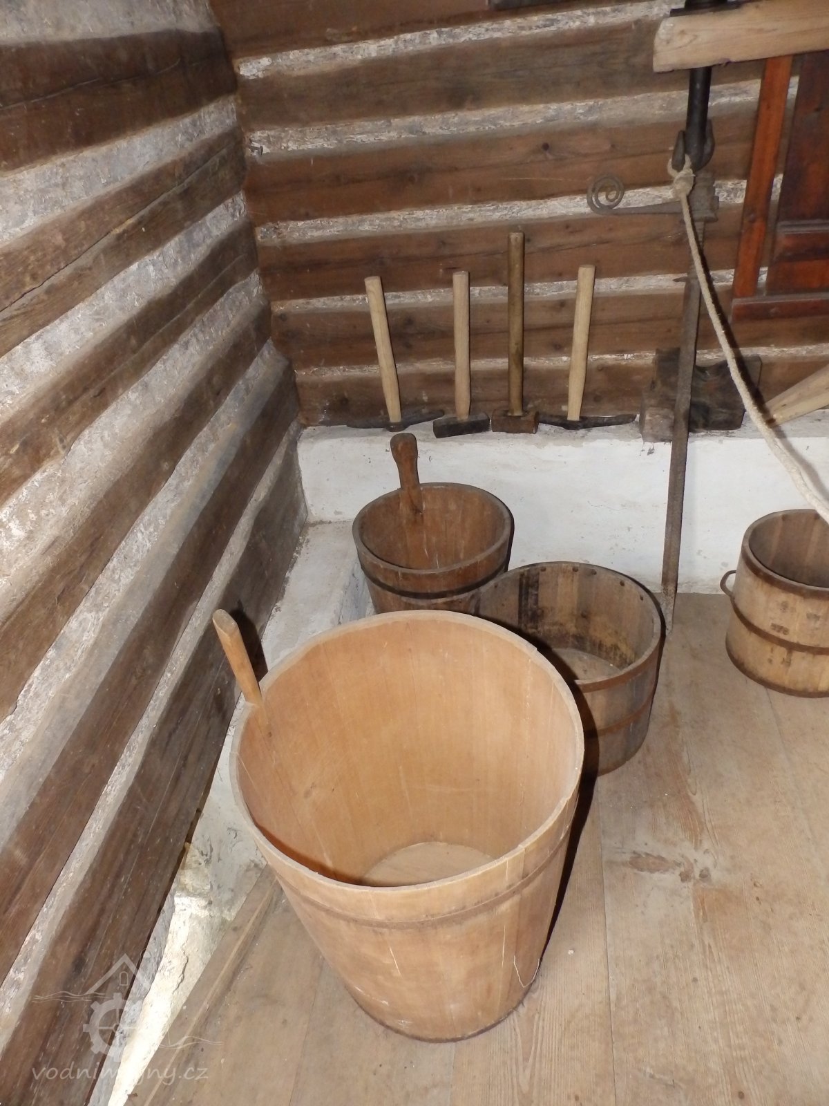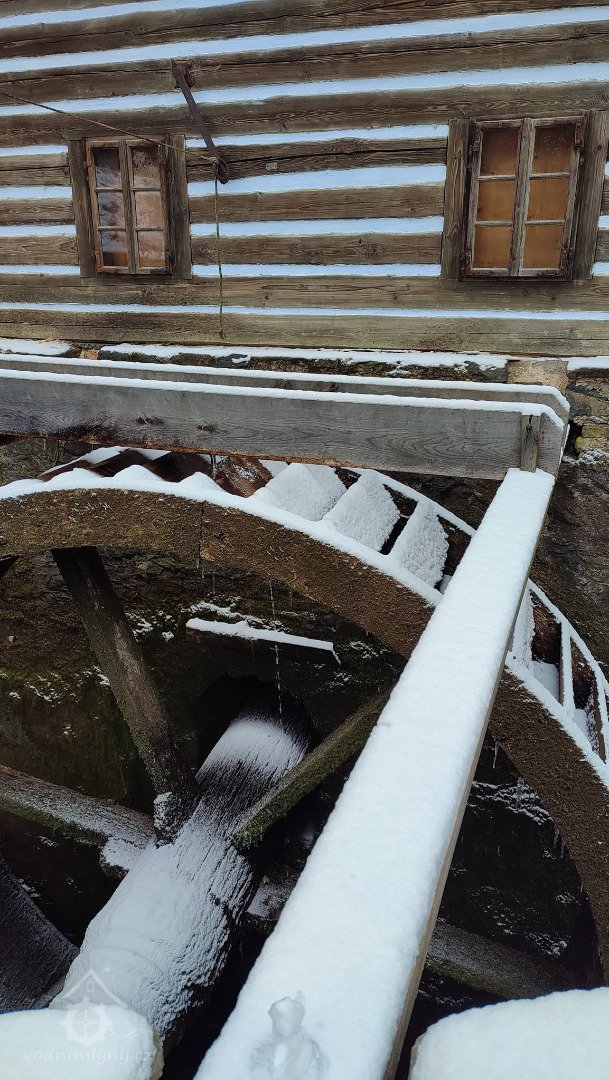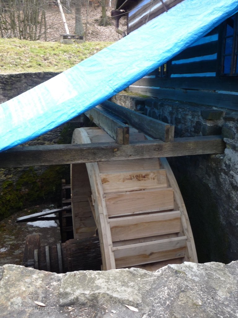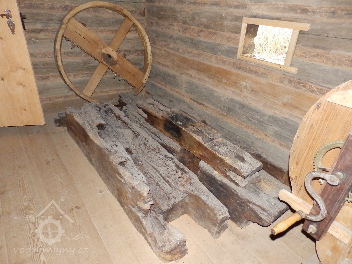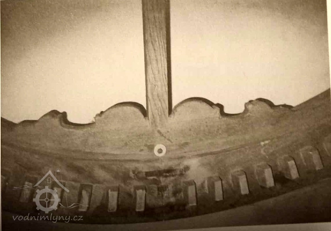 PopisZrekonstruované dubové vodní kolo na vrchní vodu s jednou řadou ramen. V původním VK byly jednotlivé segmenty spojovány dřevěnými šrouby (závit byl vyřezán přímo v segmentech)