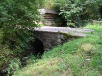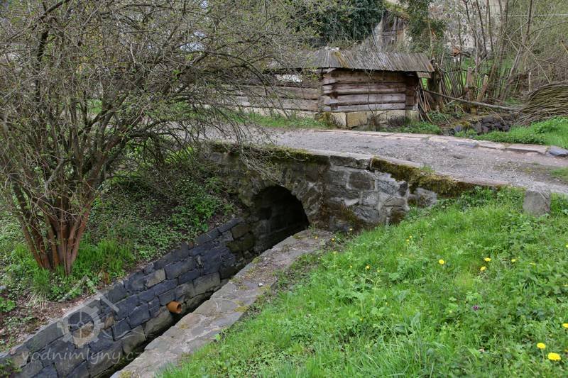 Kamenný jednoobloukový mostek s horní mostovkou je vyzděn z lomového vyvřelinového kamene (čediče a trachytu) pojeného maltou.
