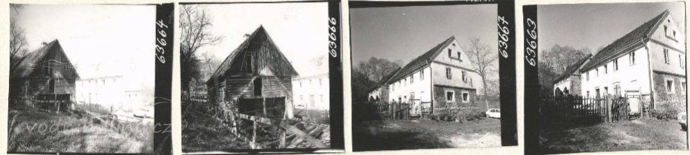 Mlýnice 18. stol., obytná část kolem r. 1800, nejpozději 1803. Obytná zděná budova pol. 19. stol., stodola konec 19. stol.