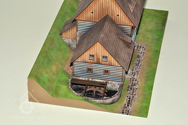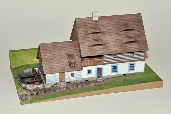 Mlýn se skládá ze dvou k sobě přiléhajících částí. Nižší díl je přízemní obdélného půdorysu se sedlovou střechou. Vnější stěny jsou roubené prolamované pravoúhlými otvory. V ose stavby směrem do dvora je dveřní otvor s jednoduchou dovnitř otevýravou výplní. Otvor rámuje mělké dřevěné ostění. Zbylé otvory jsou okenní na výšku obdélné. Směrem do dvora je jeden, na vnější štítové straně dva. Výplně jsou v dřevěných profilech, dvojité dovnitř a ven otevíravé dělené na šest okenních tabulek. Štít je svisle bedněný se dvěma na výšku obdélnými okny s výplní dělenou na čtyři tabulky. Sedlovou střechu kryjí dřevěné štípané šindele. Směrem do dvora je ve střešní rovině sedlově zastřešený vikýř. Jihozápadní štítová stěna nižšího dílu přiléhá k severovýchodní štítové stěně druhé části stavení. Tato je rovněž obdélného půdorysu, patrová se sedlovou střechou. Přízemí je omítané, plocha je bílá, ostění a šambrány jsou vyvedeny modře. Patro je pohledově roubené, na západní straně je krytý balkon vymezený dřevěným zábradlím sroubeným svislými a vodorovnými fošnami. Roubené patro má dřevěné trámy v hnědé povrchové úpravě, mazanina je zabarvena do modra až fialova. Štíty jsou svisle pobité s čtyřlistými prořezanými otvory. Střešní krytina je z dřevěného štípaného šindele. Směrem do dvora (sever) jsou ve střeše čtyři volská oka. Ze střešní roviny vyčnívá komínové těleso, které je omítané a zakončené valenou komínovou hlavou.