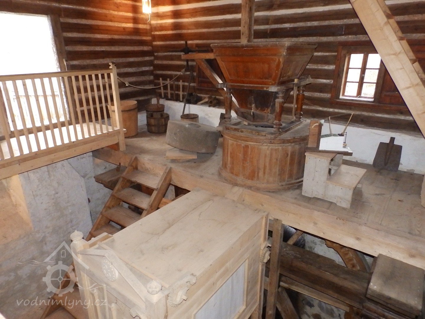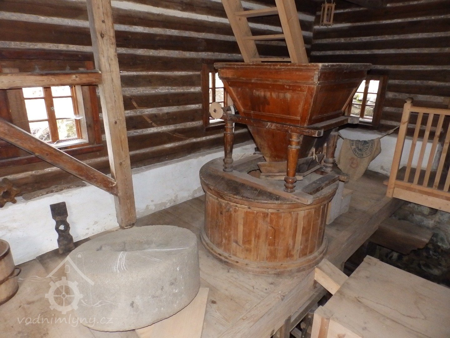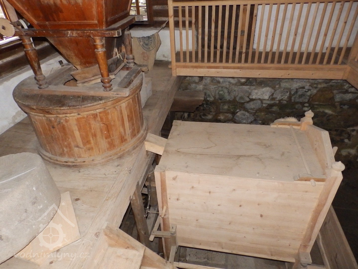 Zrekonstruované obyčejné složení s replikou moučnice. Původní vyřezávaná hranice s vročením 1803. Lub a násypný koš transferován ze zbořeného mlýna v Malých Žernosekách.