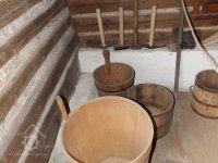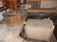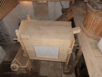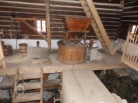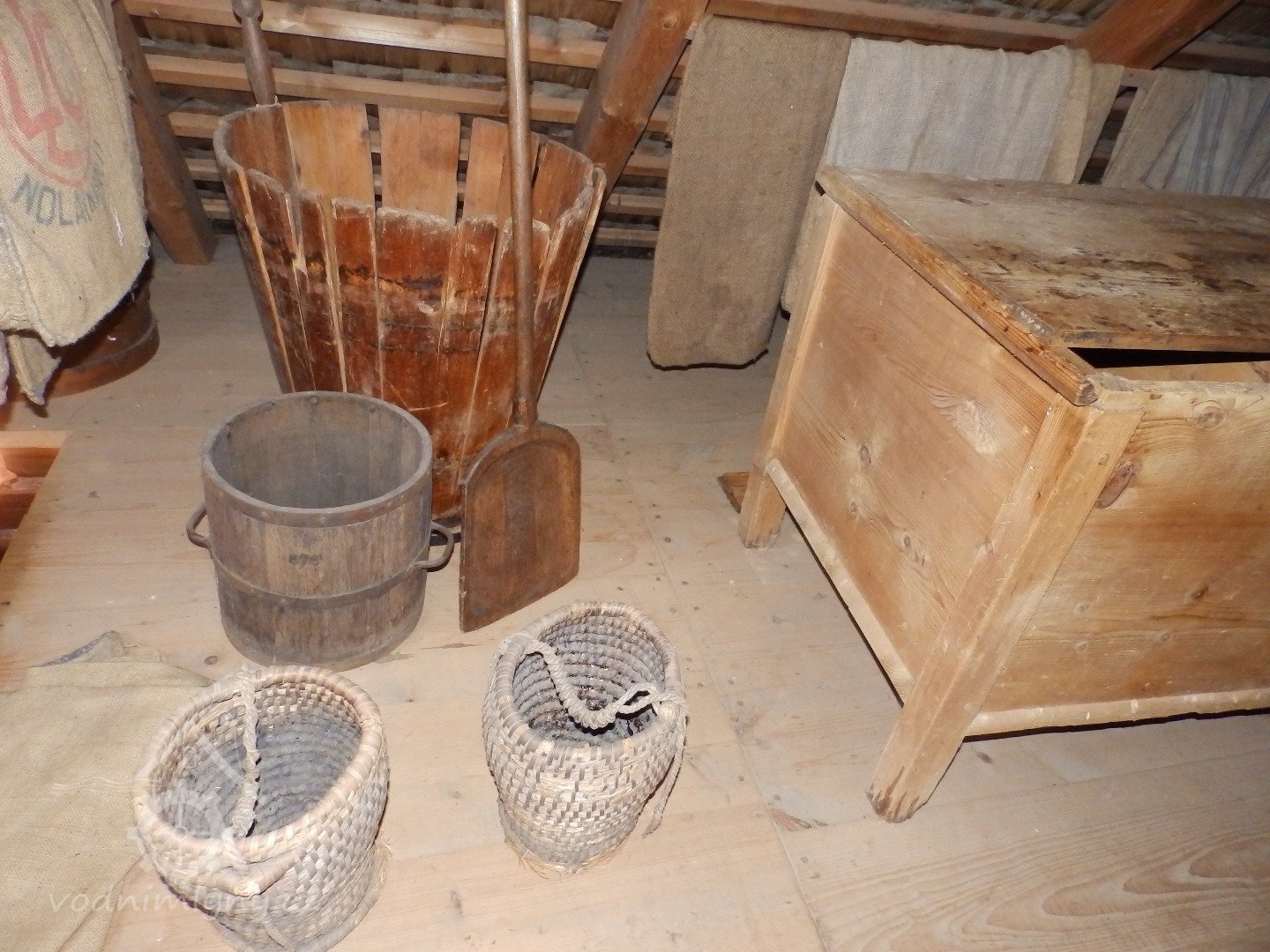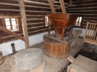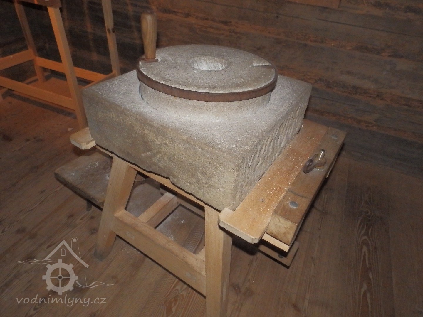 Pro ukázku mletí je zde malý ruční žernový mlýnek.