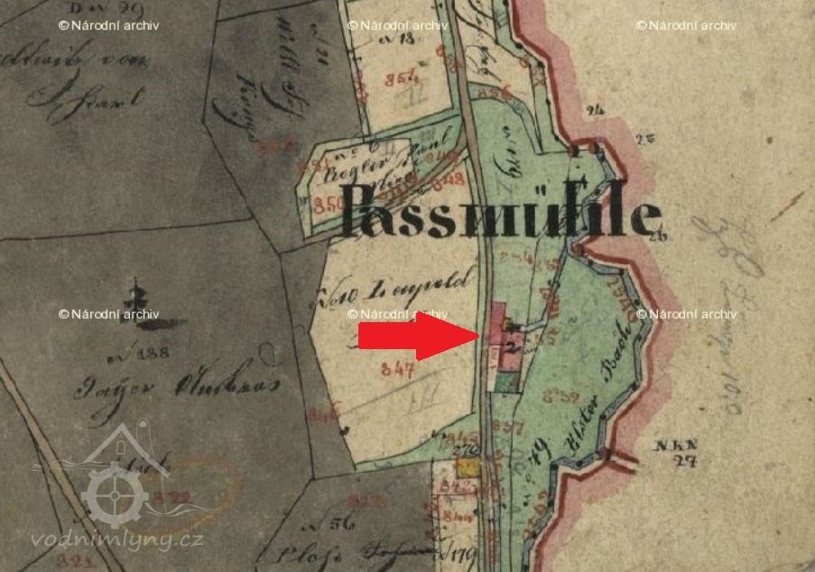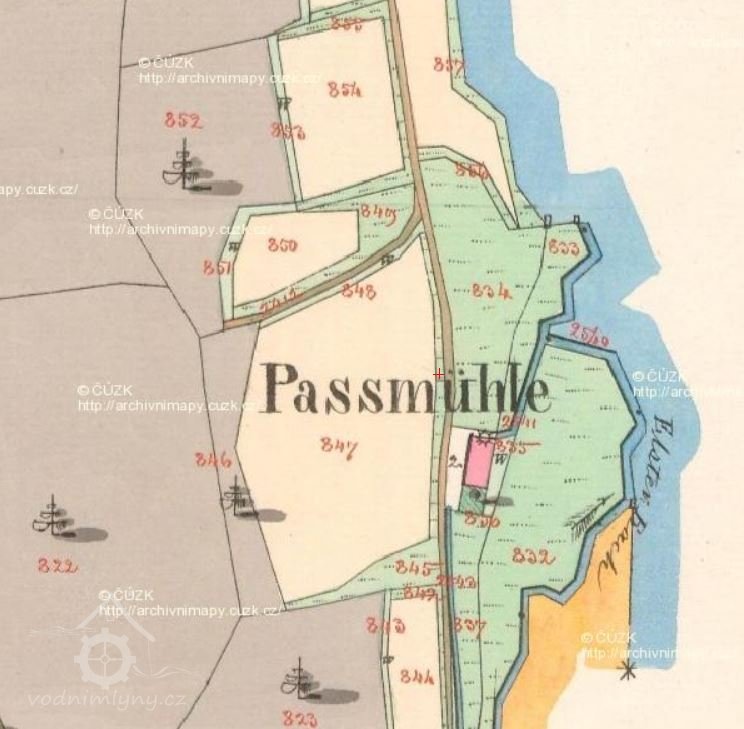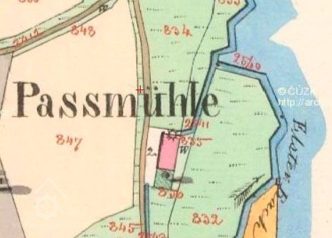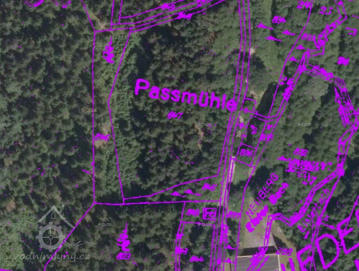 Mlýn ležel na cestě z Dolních Pasek do Podhradí u potoka Bílý Halštrov. Dnes v blízkosti přehrady.